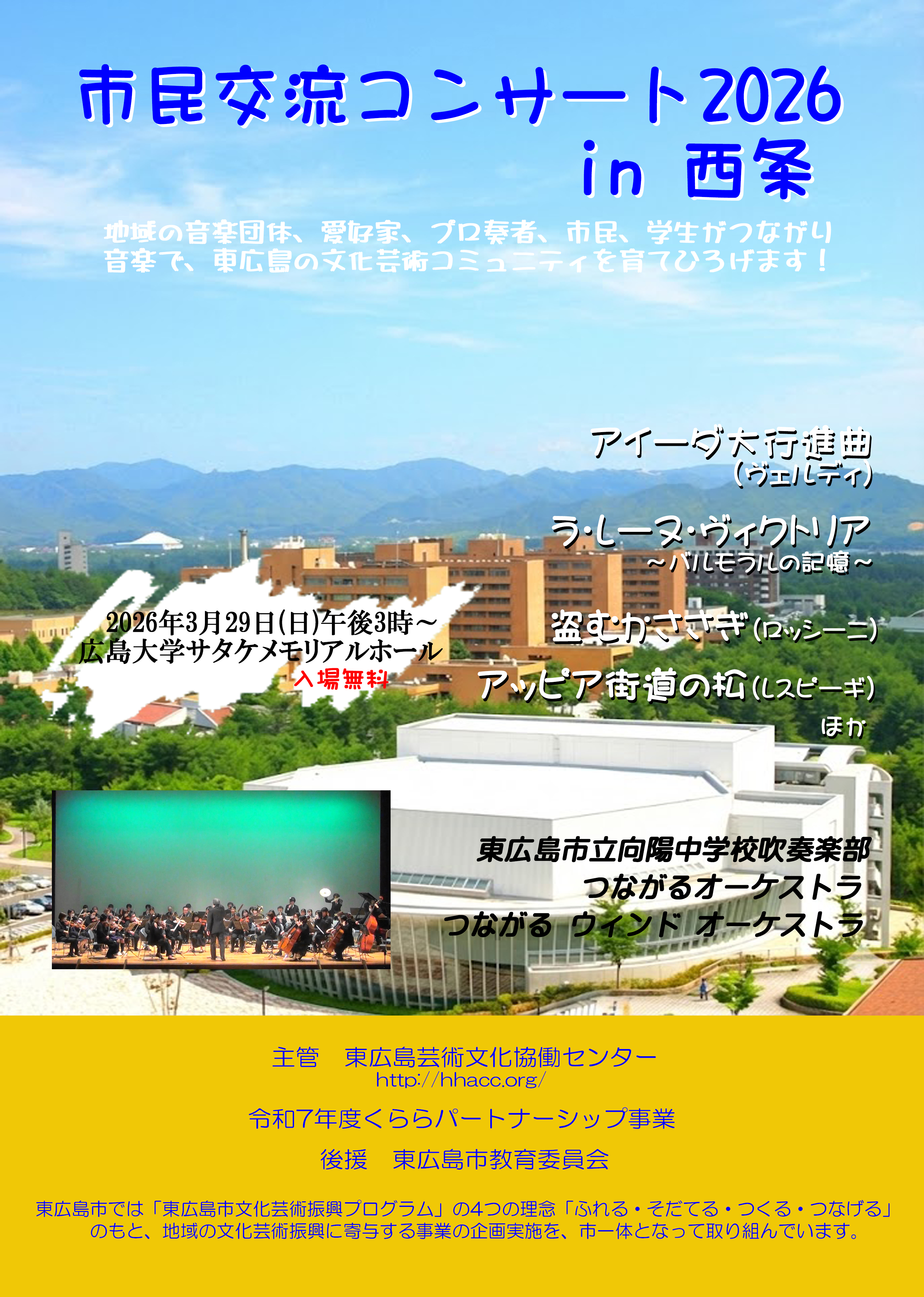 平成28年(2016年)東広島市では「ふれる・はぐくむ・つくる・つなぐ」の4つの基本理念に基づく「東広島市文化芸術振興プログラム」が策定されました。